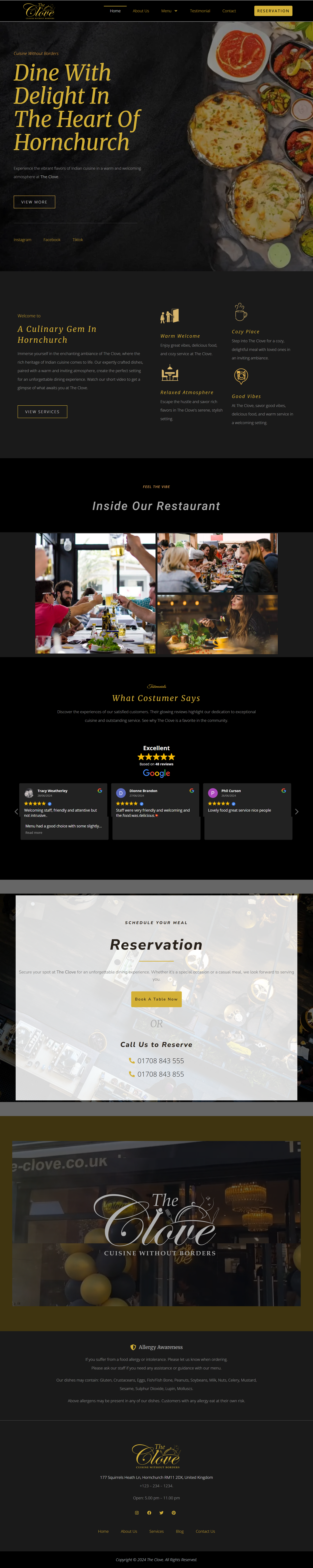 The Clove – A Culinary Experience Crafted for Elegance I had the opportunity to design a sophisticated and inviting website for The Clove, a restaurant known for its exquisite flavors and warm ambiance. The goal was to create a digital presence that reflects the restaurant’s commitment to fine dining, authenticity, and customer experience.